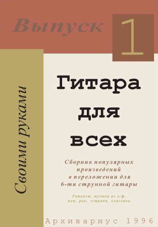 Гитара для всех. Сборник популярных переложений для шестиструнной гитары. Выпуск 1 — Сборник включает 63 переложения популярнейших романсов, музыки из кинофильмов, песни известнейших рок-исполнителей, эстрады и классики. Произведения выпуска снабжены подробной аппликатурой, что делает их доступными даже тем, кто только начинает играть на гитаре.