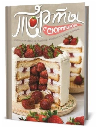 Торты с сюрпризом сделают ваш праздник незабываемым! Их ароматная середина подарит в разрезе цветы из творожного теста, радужное сердце с цедрой лайма, милых шоколадных кошек, ежевичное омбре и даже признание в любви! Торты просты в приготовлении. Эффектные приемы работы с различными видами теста, наполнителями из цедры, орехов, кусочков желе и шоколадных капель, начинками и специальными трафаретами превращают обычный рецепт в кулинарный шедевр.