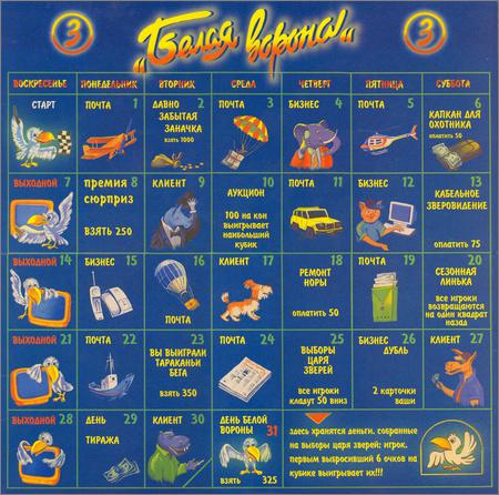 Белая ворона. Экономическая настольная игра — Если название игры "Белая Ворона" вам ни о чём не говорит, то возможно нет смысла читать дальше. Эта игра была придумана в России ещё на заре "пост-советской" эпохи и стала своеобразным "хитом", она заслужила звания "лучшая игра детства" у многих наших знакомых и поэтому она здесь.