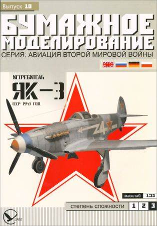 Истребитель Як-3 1943 год, СССР — Предлагаем построить бумажную модель-копию самолёта Як-3, на котором воевал летчик полка «Нормандия-Неман» Роже Марки в декабре 1944 года. Альбом для сборки модели из картона содержит инструкцию по сборке, историческую справку, выкройки. Распечатать, вырезать и склеить.
