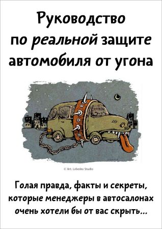 Руководство по реальной защите автомобиля от угона — Защита вашего автомобиля от угона - это серьезное решение и у вас должно быть достаточно информации, чтобы принять его правильно и осознанно. Мы предлагаем вам ознакомиться с этой книгой, из которой вы получите ответы практически на все вопросы, связанные с защитой вашего автомобиля от угона. Простым и понятным языком в книге описано как должен быть защищен автомобиль и как не попасться на удочку "тяп-ляп" установщиков. Большинство фирм, которые занимаются установкой сигнализаций и противоугонных устройств не рассказывают вам всей правды про защиту от угона. И многие дорогие "бренды", которые вам пытаются продать, часто могут оказаться пустой тратой денег.
