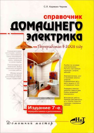Справочник домашнего электрика — Справочник седьмого издания обновлен и переработан в соответствии с пожеланиями читателей. Он содержит необходимые домашнему электрику сведения по основам электротехники, элементам домашней электросети, электробезопасности, организации эффективного освещения, учету и экономии электроэнергии, а также электросварке в любительских условиях. Материал в справочнике систематизирован. Приводится много интересных примеров, полезных советов, важных предупреждений, рисунков и таблиц. Даются ссылки по тексту на наиболее интересные сайты, из которых можно почерпнуть подробную информацию. Кроме того, главы снабжаются разделами с обзором полезных Интернет-ресурсов. Книга предназначена для широкого круга читателей. Информация будет полезна как "продвинутым" электрикам, так и тем, кто хочет овладеть искусством домашнего мастера-электрика. Это настольная книга каждого мужчины.