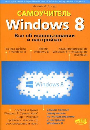 Windows 8. Все об использовании и настройках. Самоучитель — Данная книга является расширенным самоучителем по Windows 8 и позволяет стать продвинутым пользователем этой системы. Помимо стандартных, но необходимых тем (работа с файлами и папками, оформление Windows 8, Интернет и проч.) в книге вы найдете также: рассмотрение реестра Windows 8 и работы с ним, описание управления загрузчиком системы и контроля производительности, настройки сетевого принтера и многое другое. Особо хочется отметить наличие таких интересных разделов, как создание резервных копий файлов, рассмотрение приложений Windows Live, работа с новым Metro-интерфейсом и его приложениями, установка Windows 8 паралелльно с другой операционной системой на одном компьютере, справочник по службам Windows 8 с рекомендациями, что надо отключать, а что нет (приведены готовые конфигурации), использование консоли и оснасток Windows 8. Отдельные главы посвящены решению проблем с Windows 8: восстановление Windows 8 в случае краха, встроенные механизмы антивирусной защиты и т.п. По всему ходу изложения приводятся всевозможные трюки и недокументированные возможности (типа как включить "режим бога" в Windows 8 и проч.). Книга написана простым и доступным языком признанными авторами-профессионалами.